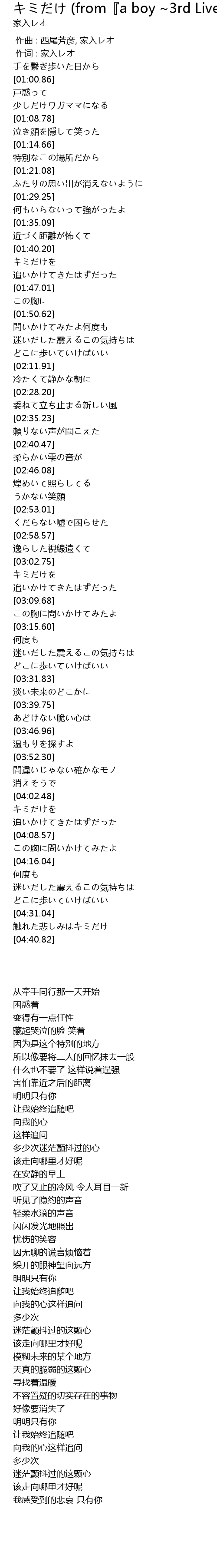 | Song | キミだけ (from『a boy ~3rd Live Tour~』) |