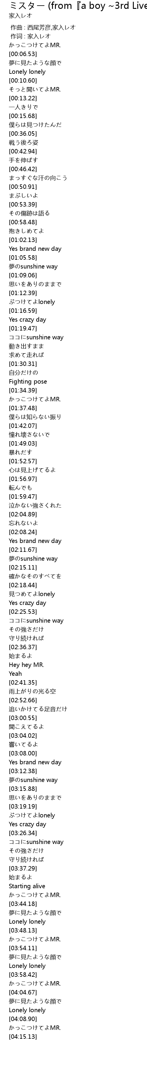 | Song | ミスター (from『a boy ~3rd Live Tour~』) |