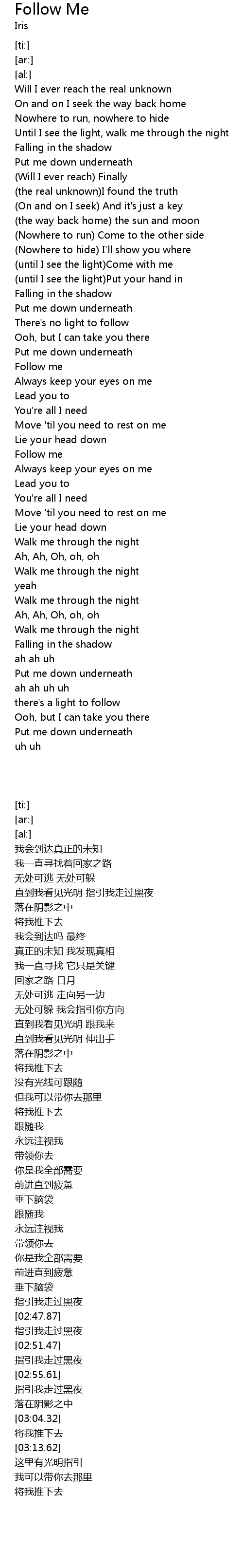 | [02:30.00] | Follow me |