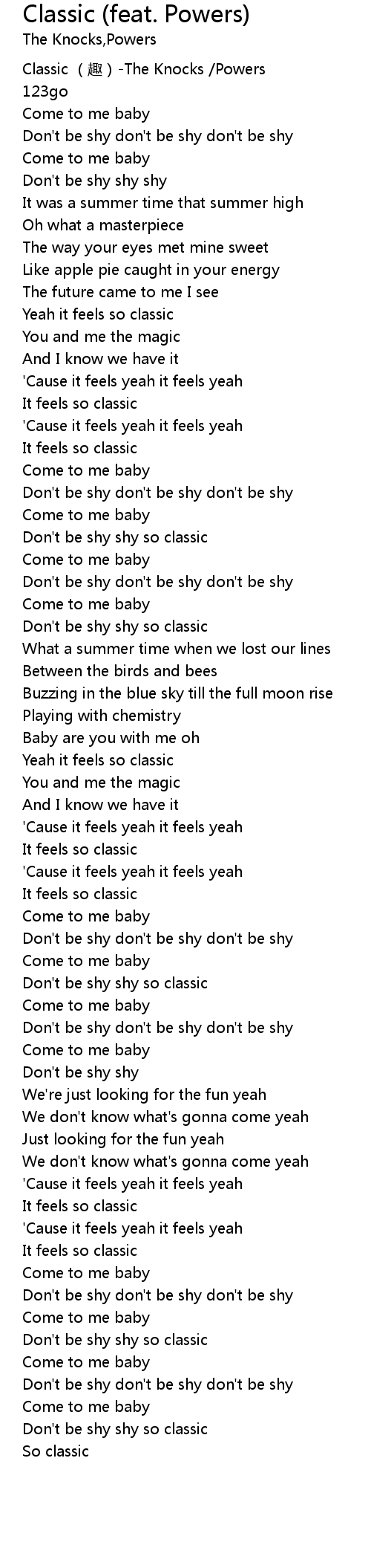 | [00:00.00] | Classic (趣)-The Knocks /Powers |