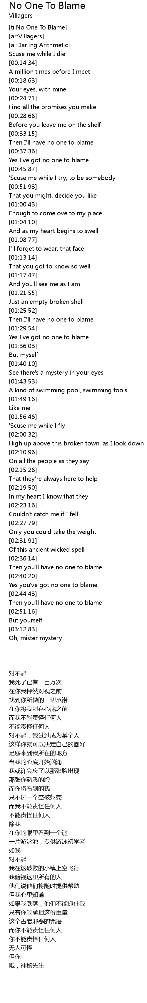 [ti:No One To Blame] |