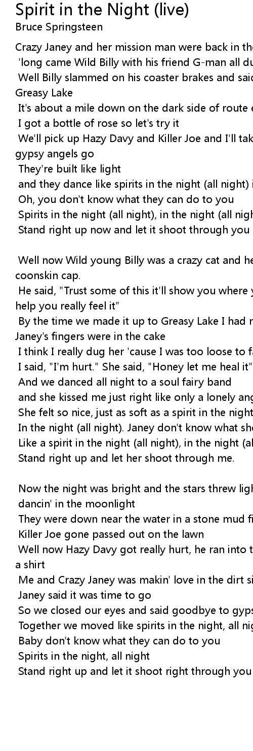 Spirits in the night (all night), in the night (all night) |