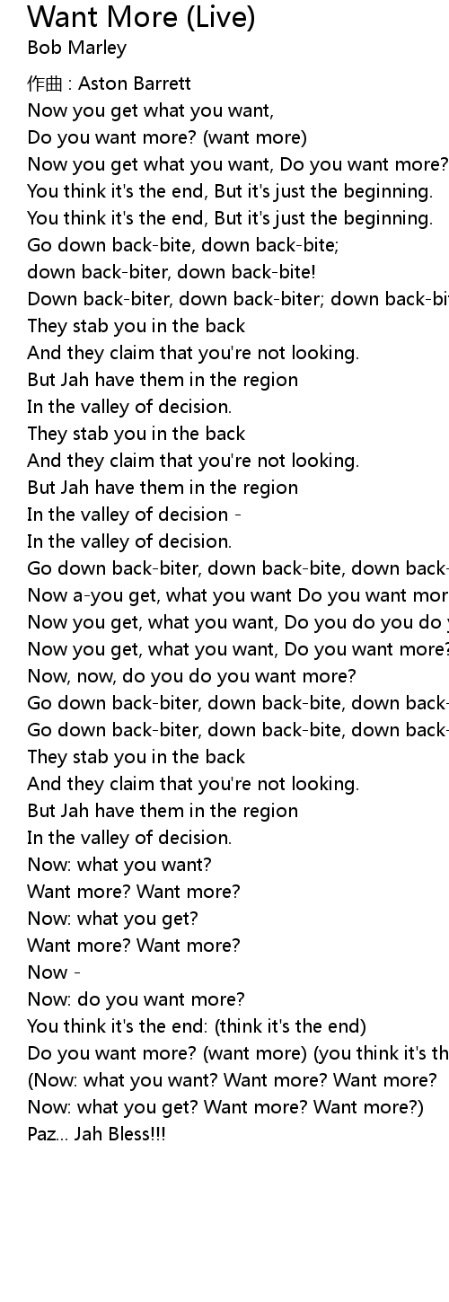 | Now you get, what you want, Do you do you do you do you want more? | |