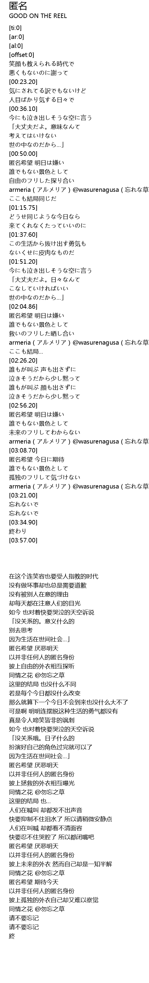 | [02:56.40] | 匿名希望 明日は嫌い |