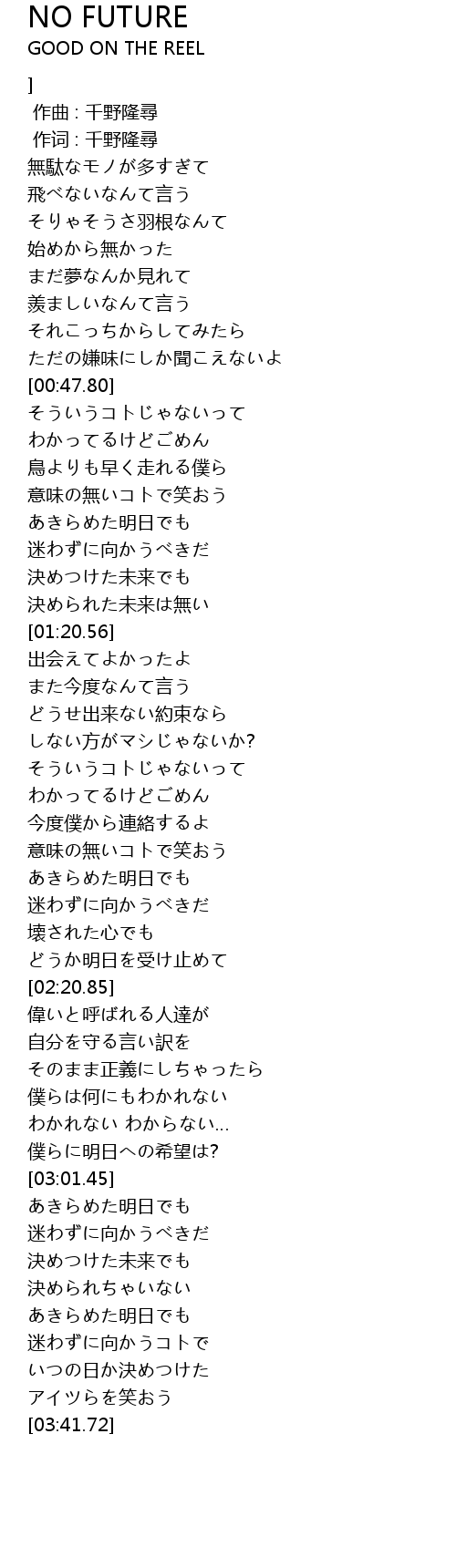 | [01:57.41] | 意味の無いコトで笑おう |