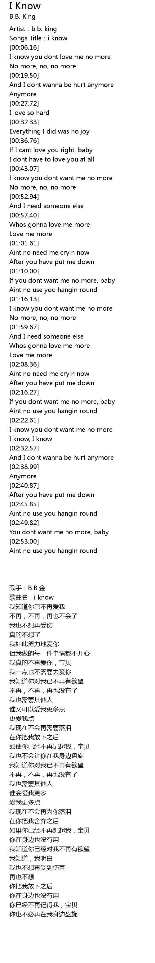 | [00:20.45] | And I dont wanna be hurt anymore |