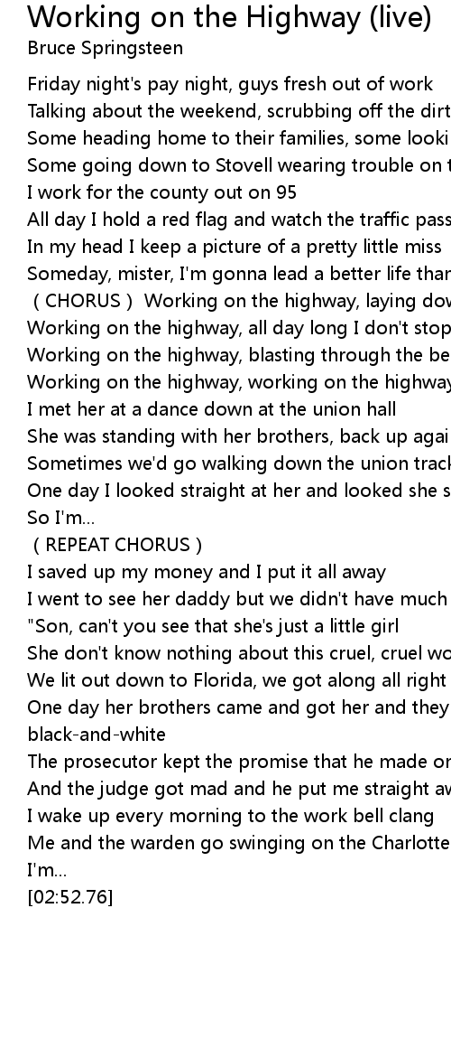 | [00:46.39] | CHORUS Working on the highway, laying down the blacktop |