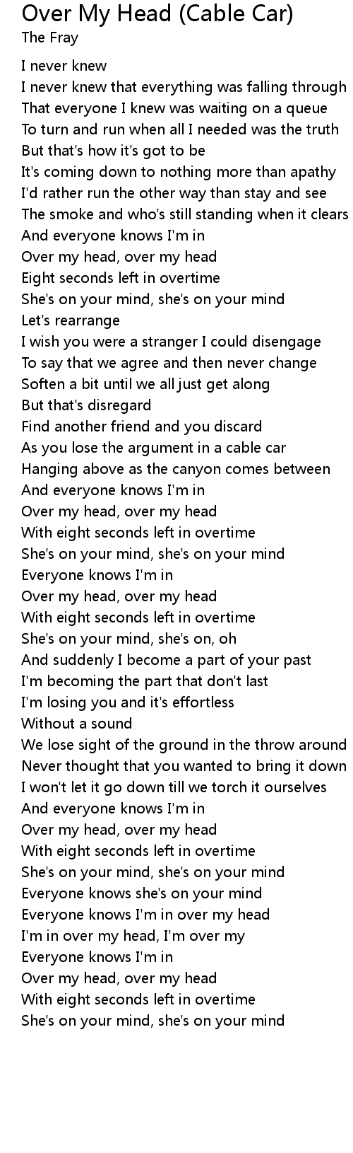 Over my head, over my head |