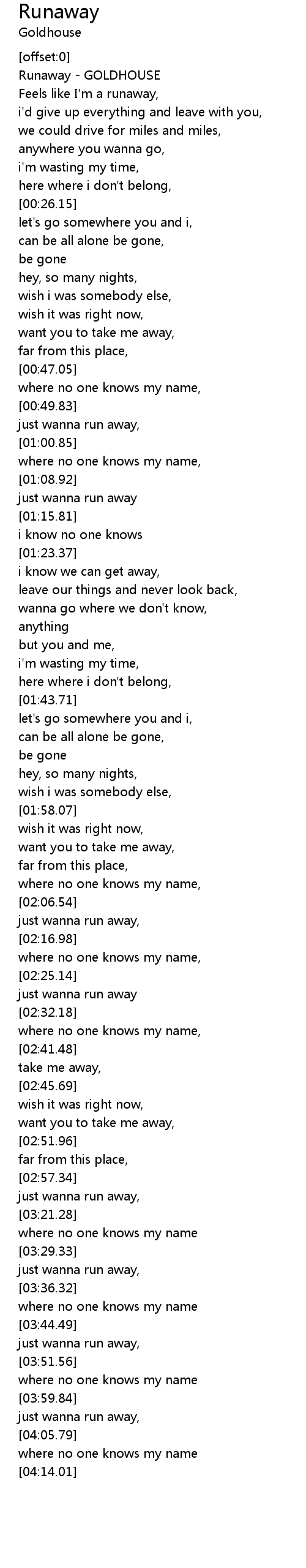 Feels like I'm a runaway, |