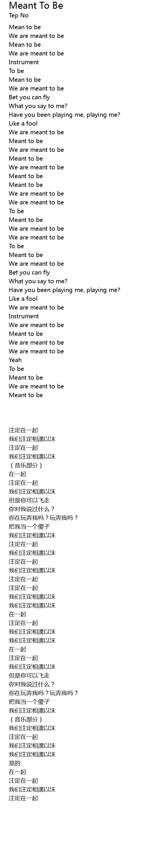 | [02:30.33] | Meant to be |