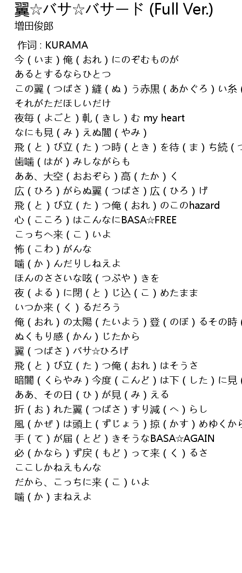 | [02:30.191] | 翼(つばさ)バサ☆ひろげ |