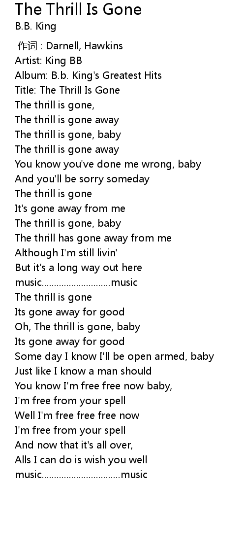 | [00:45.91] | The thrill is gone, baby |