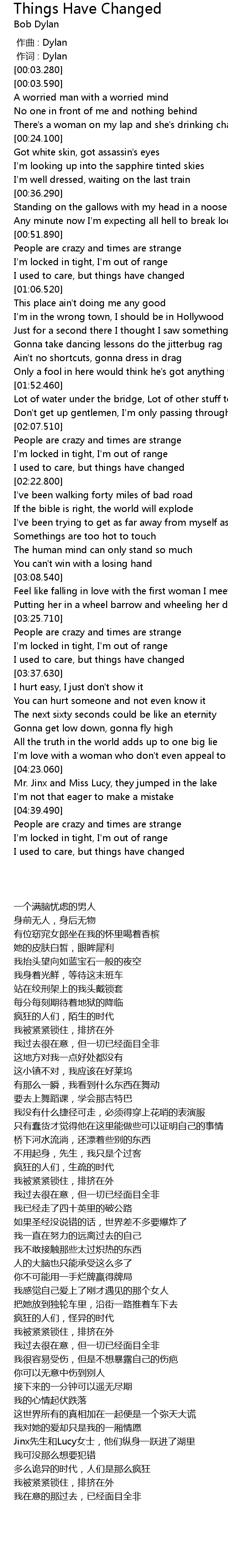 | [03:25.730] | People are crazy and times are strange |