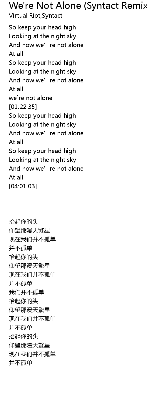 | [00:51.00] | And now we' re not alone |