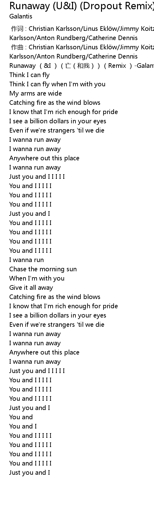 | [00:00.00] | Runaway (&I )(亡(和我))(Remix )-Galantis |