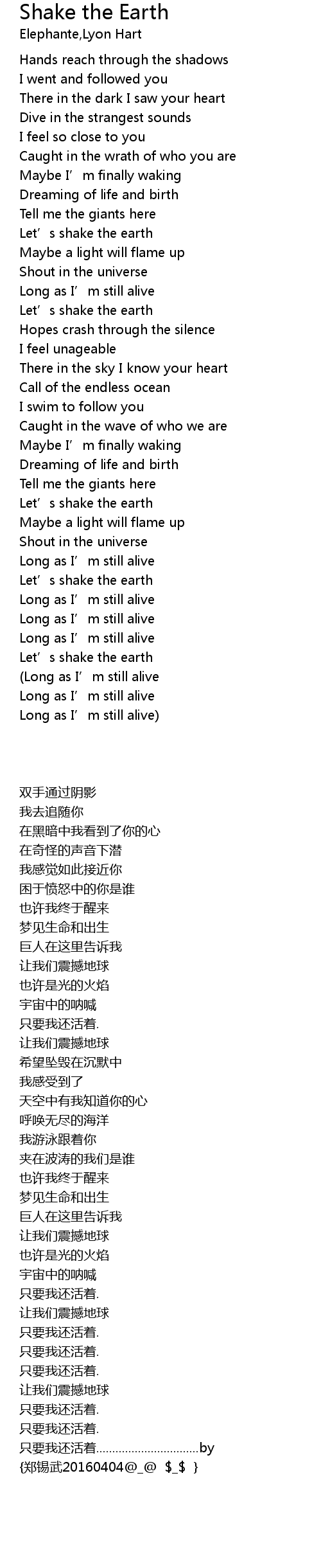 | [03:04.71] | Let' s shake the earth |
