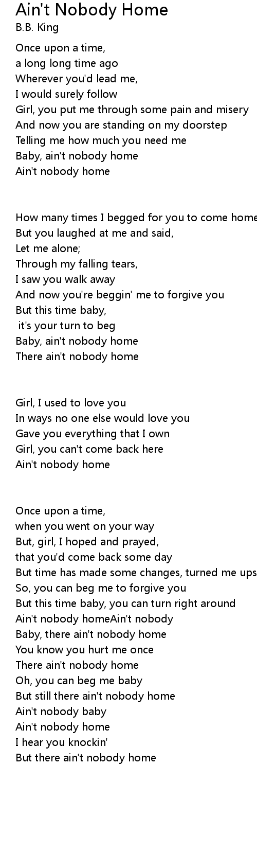 | Ain't nobody homeAin't nobody | |