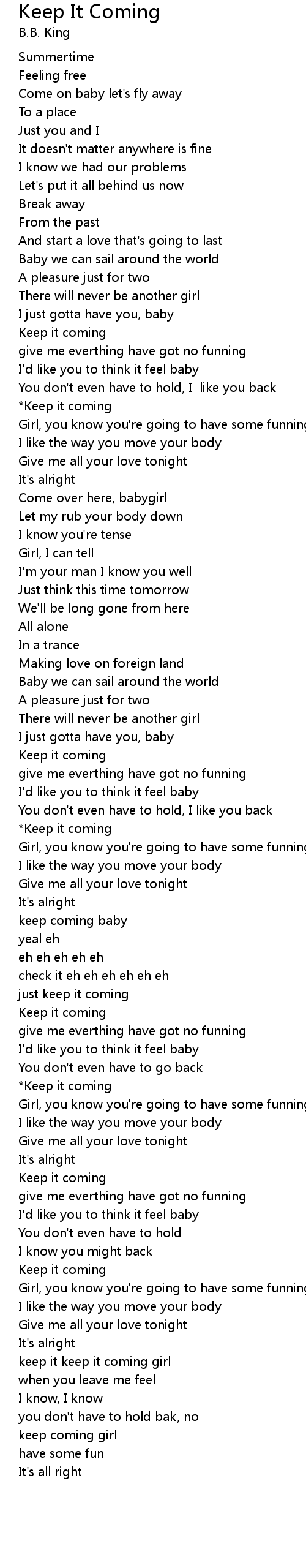 Keep It Coming Lyrics