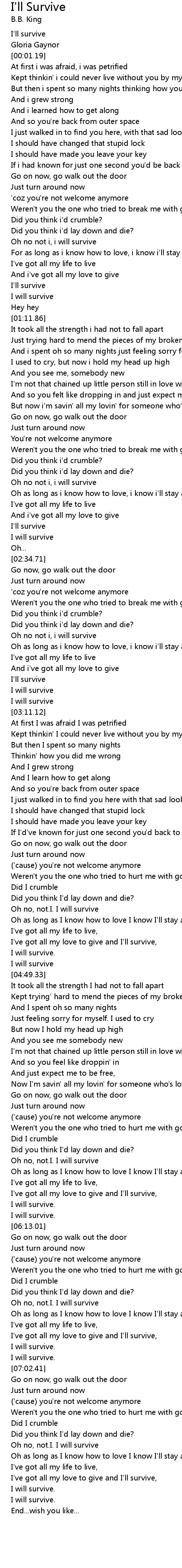 Oh no, not.I. I will survive |