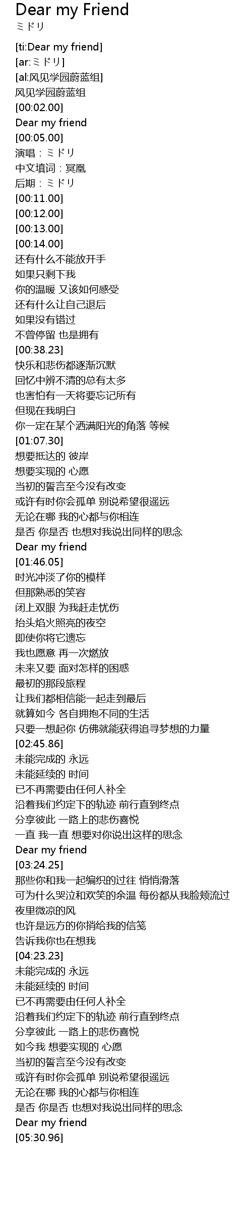 | [00:04.00] | Dear my friend |