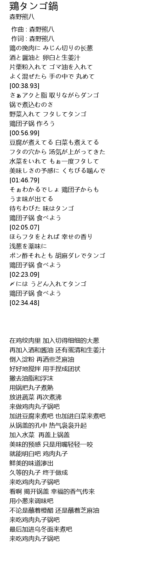 | [02:01.80] | 鶏団子锅 食べよう |