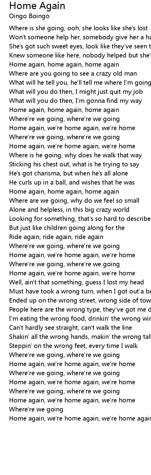 Home again, we're home again, we're home |
