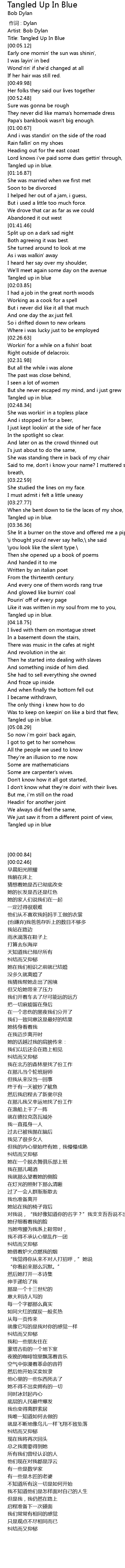 | [05:54.20] | Tangled up in blue |