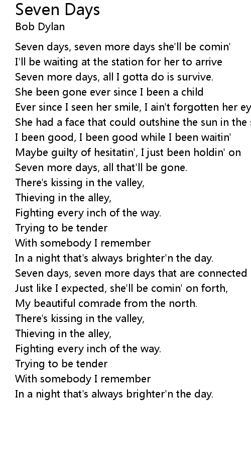 Seven days, seven more days she'll be comin' |