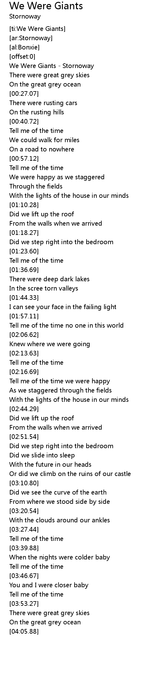 | [00:00.13] | We Were Giants - Stornoway |