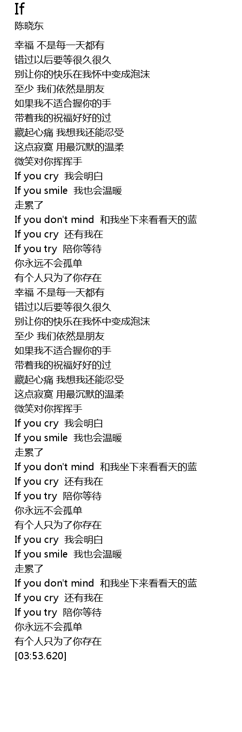 | [03:35.660] | If you cry hái yǒu wǒ zài |