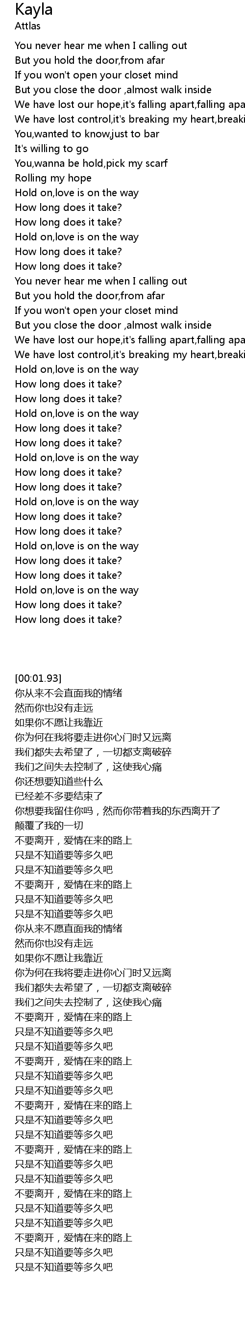| [03:30.00] | Hold on,love is on the way |