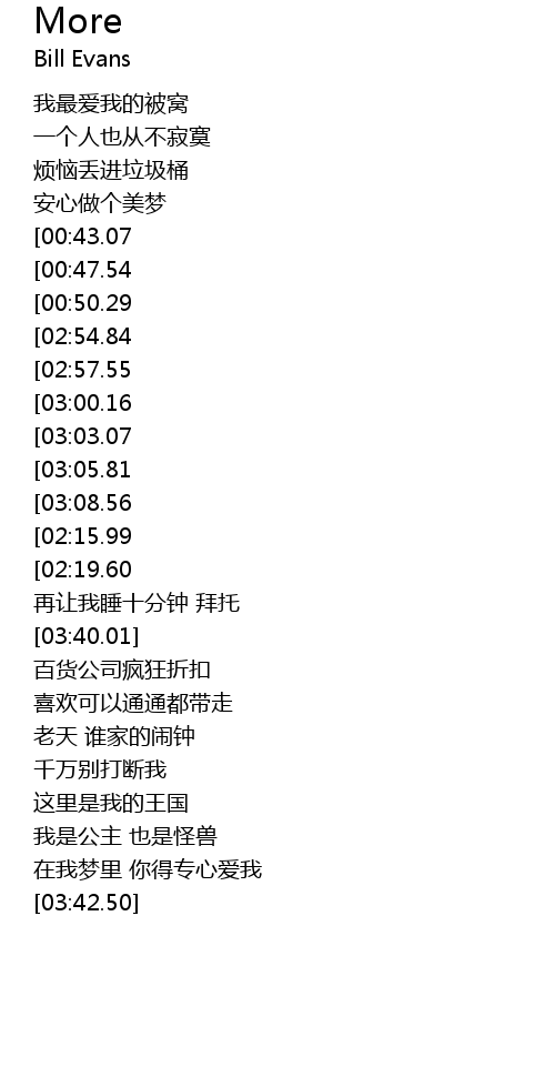 | [03:33.51][03:08.56][02:13.05][01:09.30] | 我还要more more more |