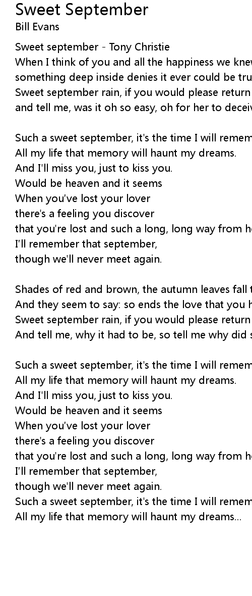 | Such a sweet september, it' s the time I will remember . | |