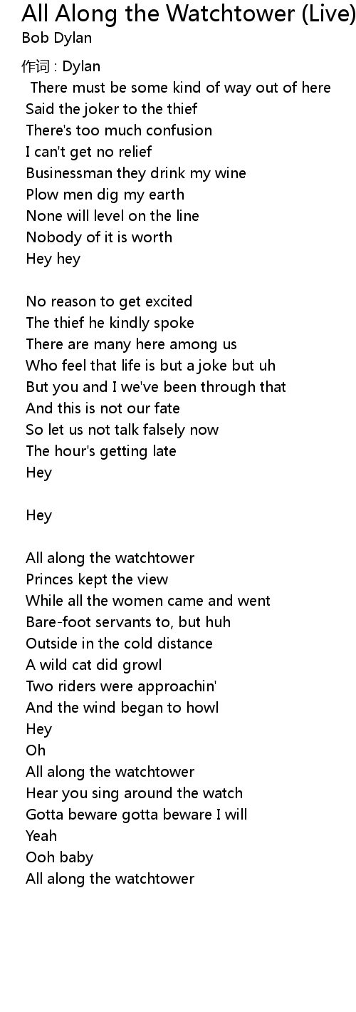| All along the watchtower |