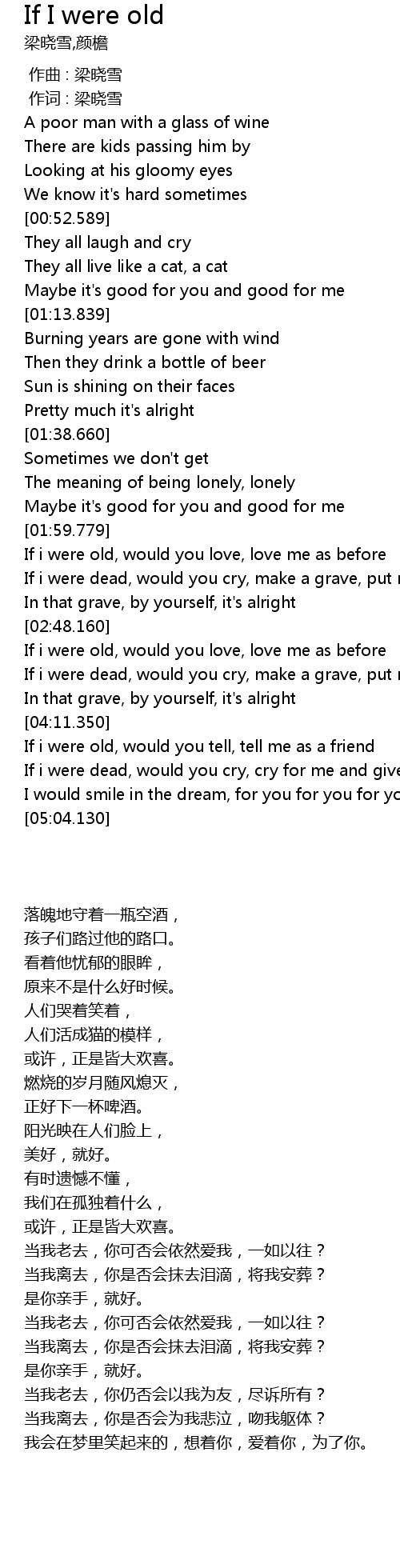 | [04:12.460] | If i were old, would you tell, tell me as a friend |
