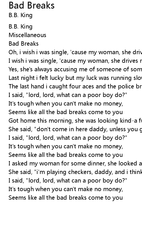 Seems like all the bad breaks come to you |