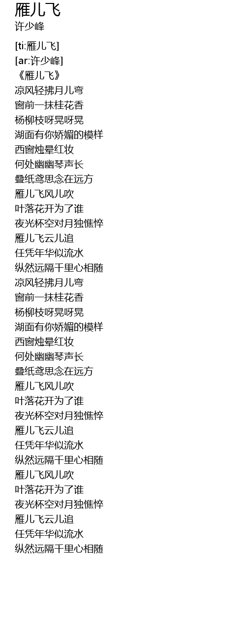 | [02:37.138] | yàn ér fēi fēng ér chuī |