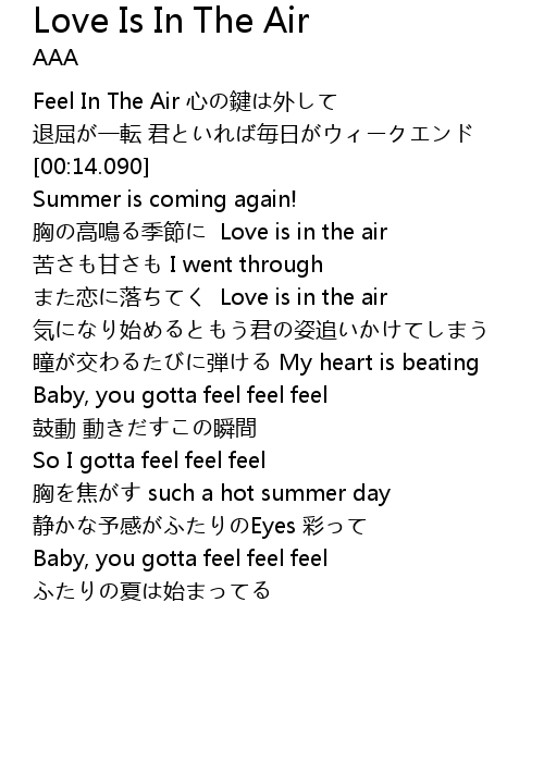 | [00:02.930] | Feel In The Air xīn jiàn wài |