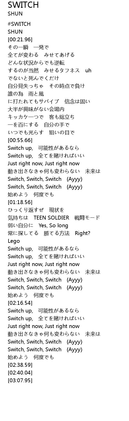 | [02:07.82] | Switch, Switch, Switch Ayyy |