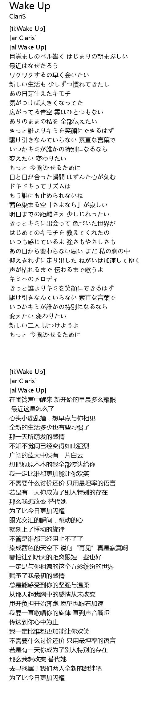 | [00:15.16] | 目覚ましのベル響く はじまりの朝まぶしい |