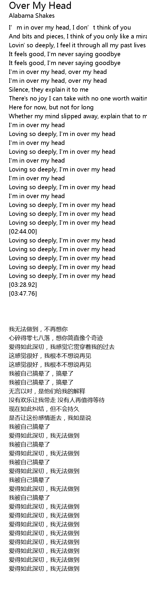 | [00:43.68] | I'm in over my head, over my head |