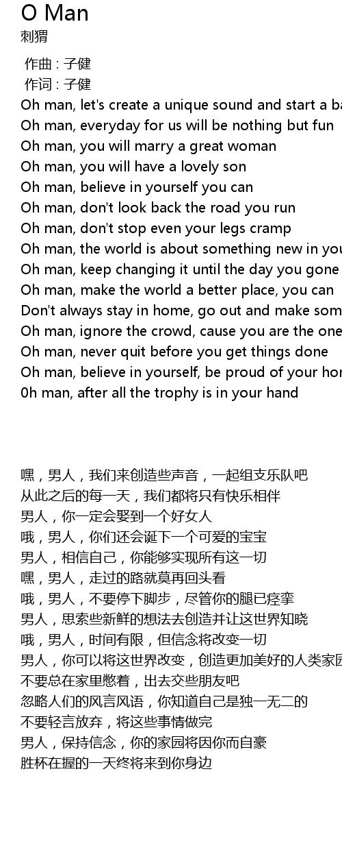 | [02:42.000] | Oh man, believe in yourself, be proud of your homeland |