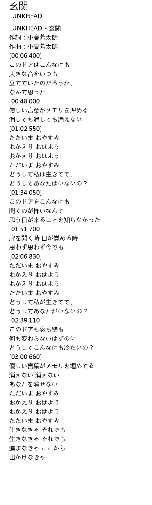 | [00:00.150] | LUNKHEAD - 玄関 |
