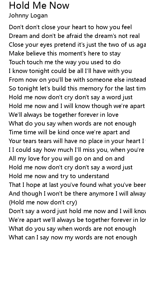 Don't say a word just hold me now and I will know though |