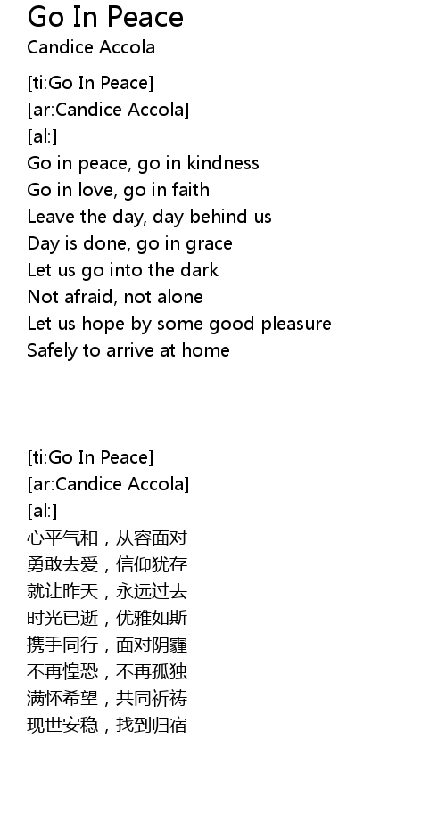 | [00:02.10] | Go in peace, go in kindness |