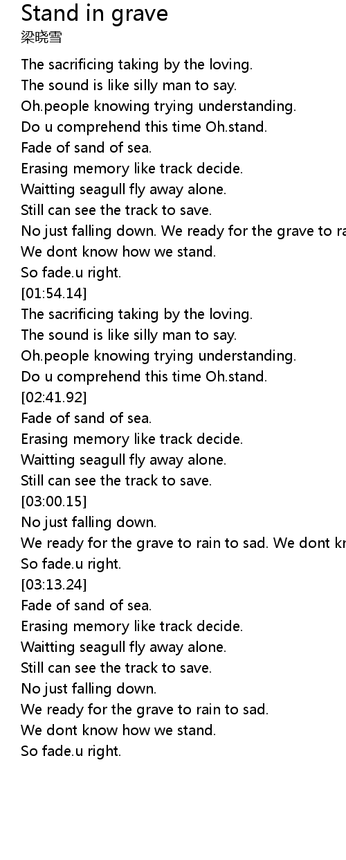 We ready for the grave to rain to sad. We dont know how we stand. |