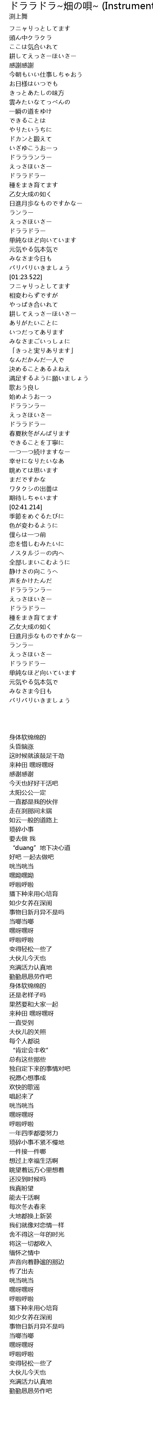 | Song | ドララドラ~畑の唄~ (Instrumental) |