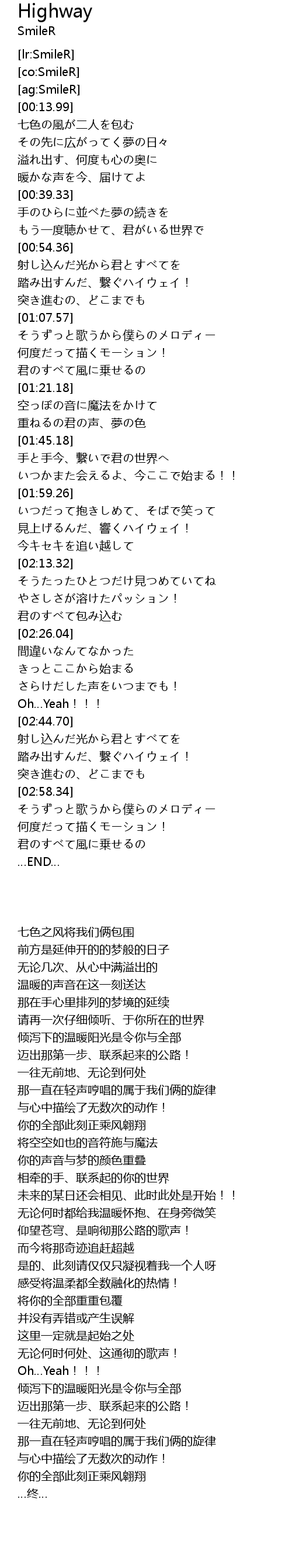 | [02:06.78] | 見上げるんだ、響くハイウェイ! |