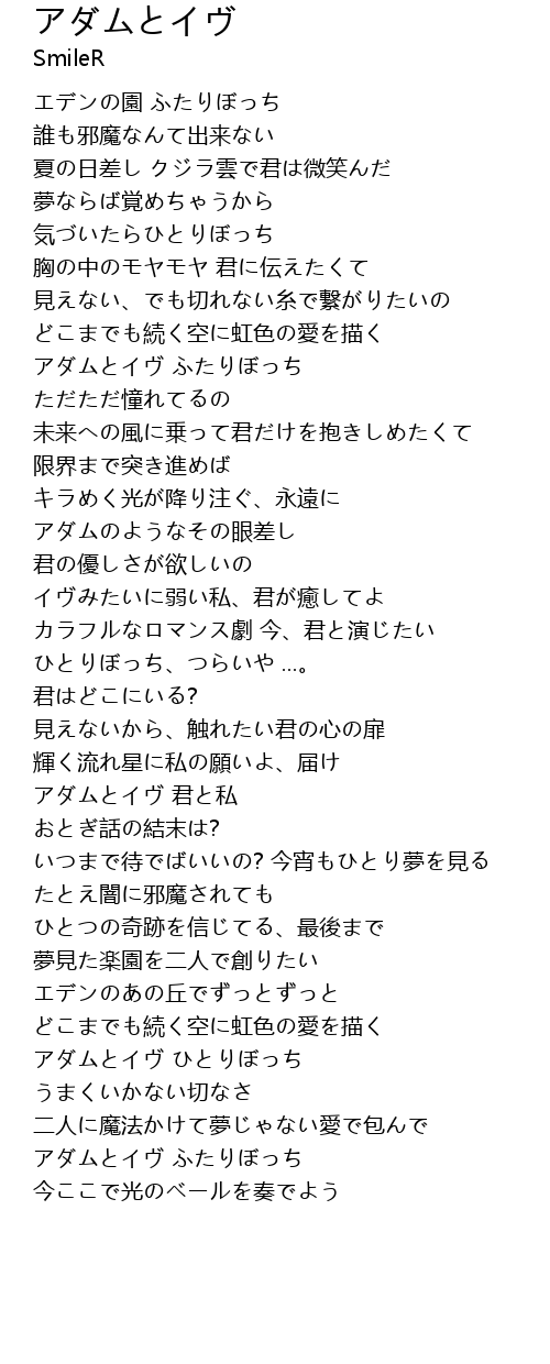 | [03:38.36] | アダムとイヴ ふたりぼっち |