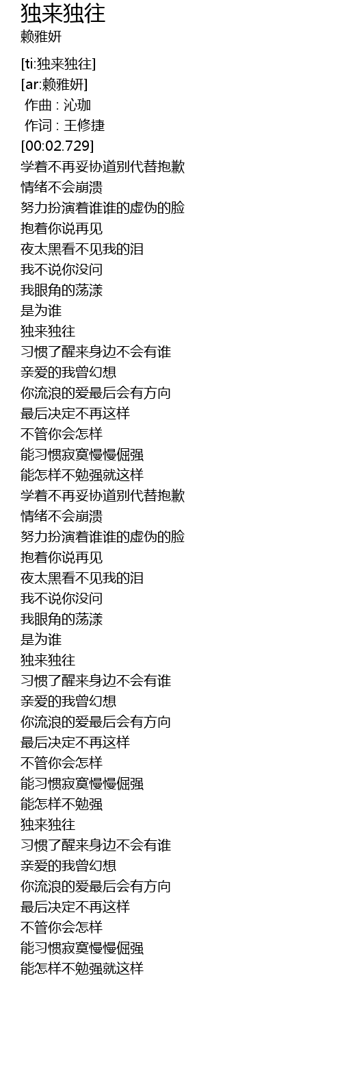 | [02:42.972] | 独来独往 |